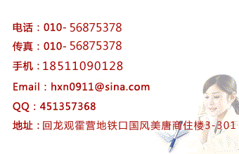 電話:010-56875378 18511090128 聯系人:賀經理 地址:北京昌平回龍觀霍營地鐵口國風美唐商住樓3-301